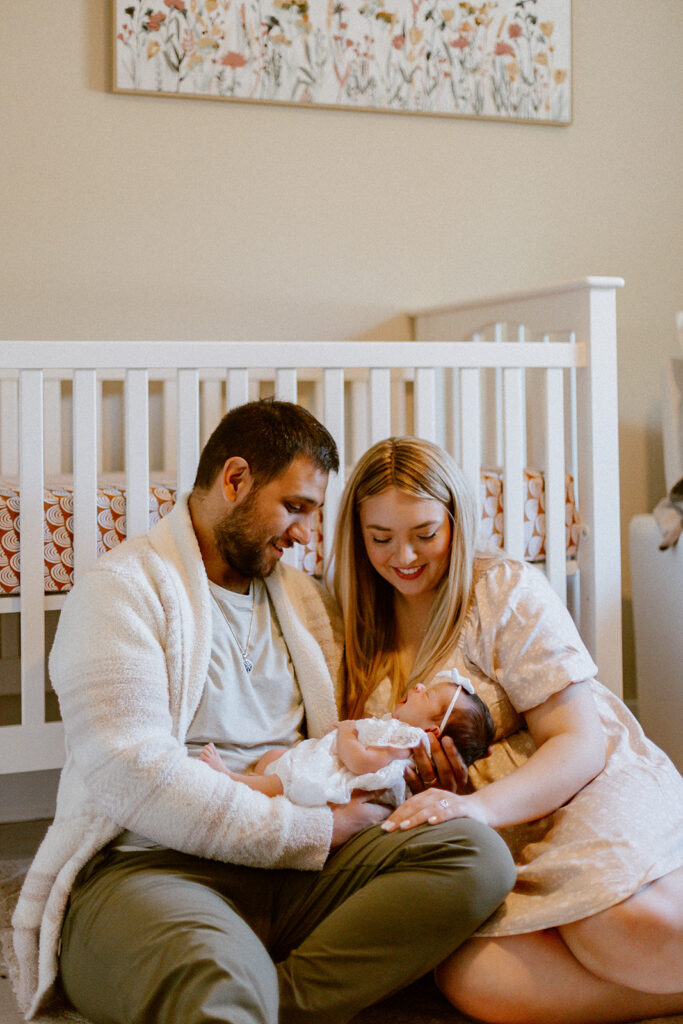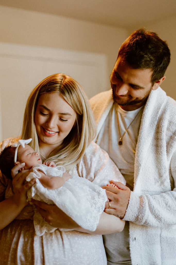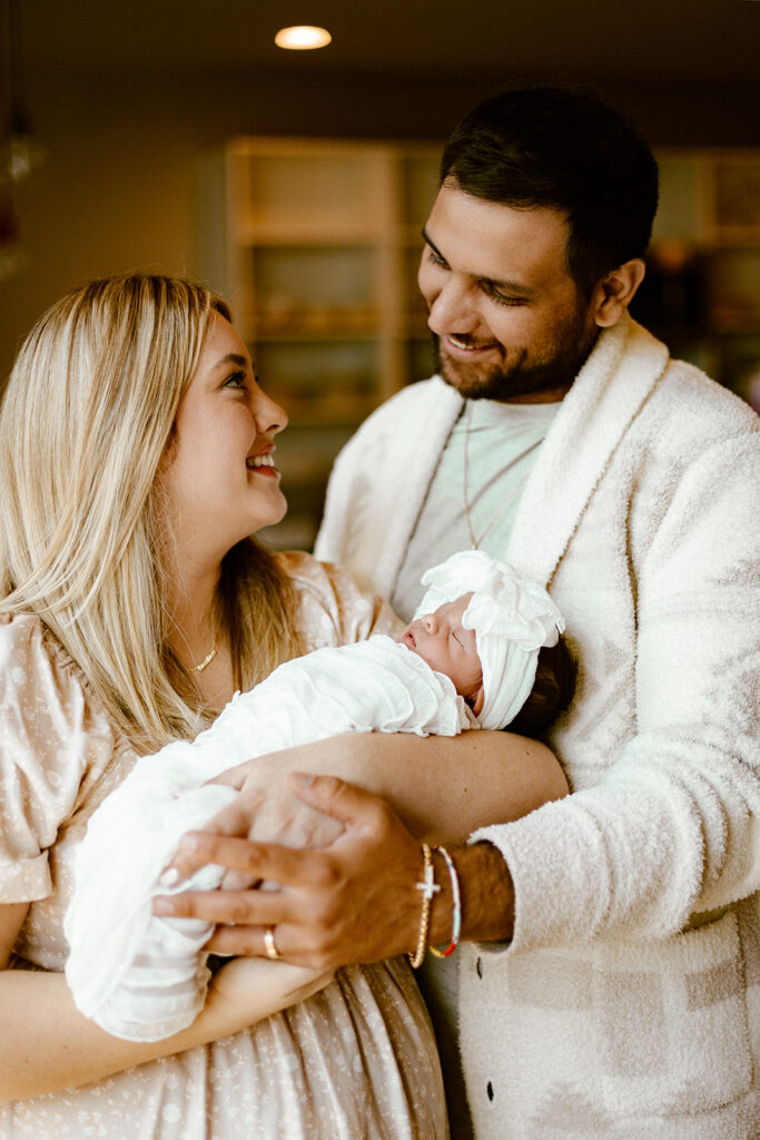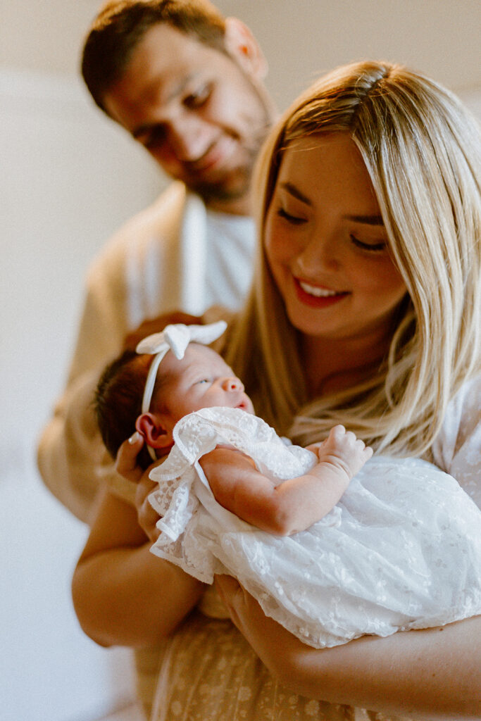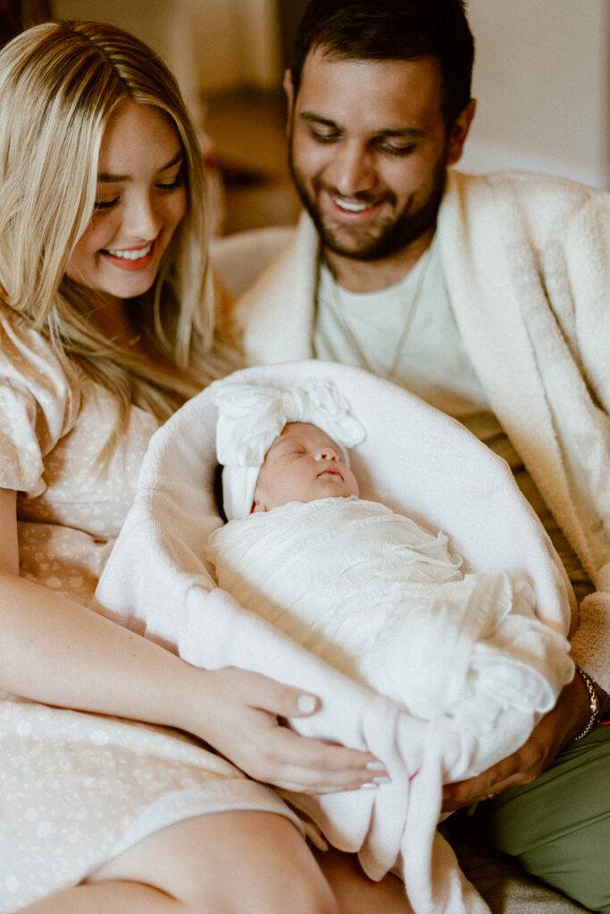 Photographing the journey of Victoria and Josh has been an incredible honor. From their pregnancy announcement in a sunlit field in Austin to the anticipation of their studio maternity session, and then to this newborn session at their home, each moment has been a testament to their growing love and excitement. This is almost TWO years ago now (I am clearly not good at posting oops) but I had the privilege of joining them in their cozy home to document the first few days with their beautiful daughter, Isabella :’)))
